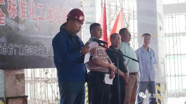 2017年7月14日上午九點,由市建設局組織的“牡丹江市質量、安全標準化現(xiàn)場觀摩交流會” 在我公司承建的恒豐紙業(yè)職工文化活動中心項目施工現(xiàn)場隆重召開。我市及所轄外市縣安全監(jiān)察站、工程質量監(jiān)督、房地產(chǎn)開發(fā)企業(yè)、監(jiān)理單位、施工單位及牡市內在建項目的管理人員,共計四百多人參加了此次觀摩會。