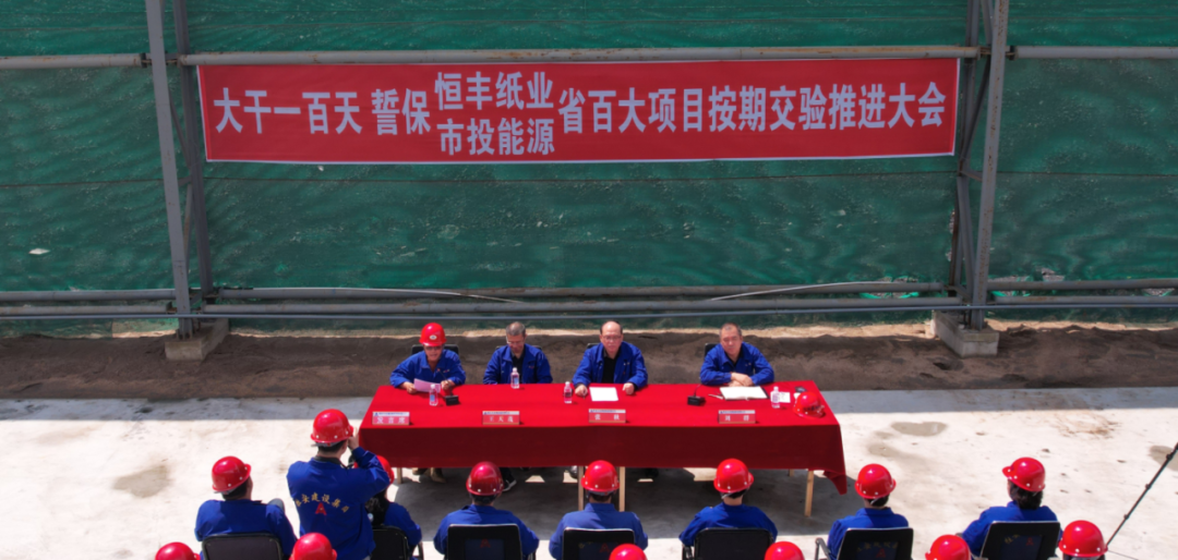 此次參加“會戰(zhàn)”的兩個項目(恒豐紙業(yè)/市投能源)負責(zé)人曹福昌、李宜永及勞務(wù)隊伍負責(zé)人李大山,在會上作表態(tài)發(fā)言。